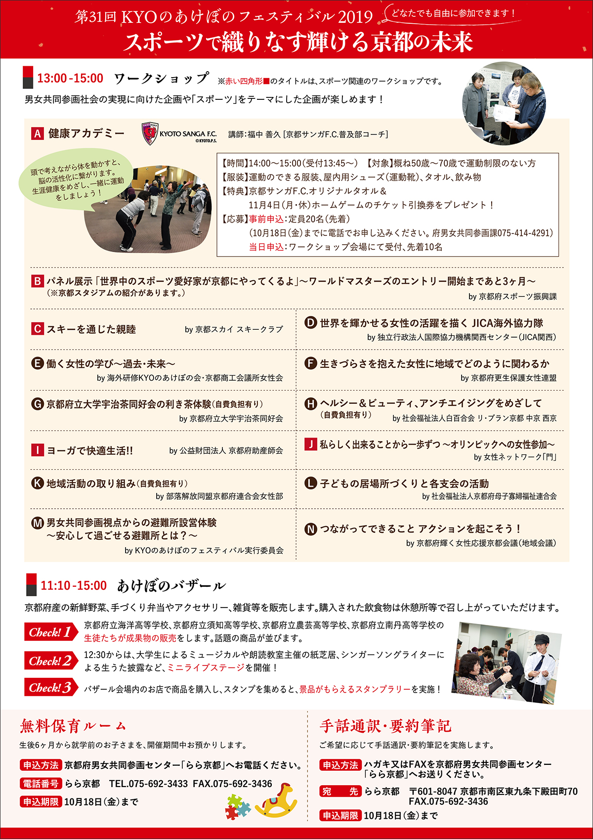 男女共同参画社会の実現をめざして開催される「KYOのあけぼのフェスティバル」のチラシを作成しました。